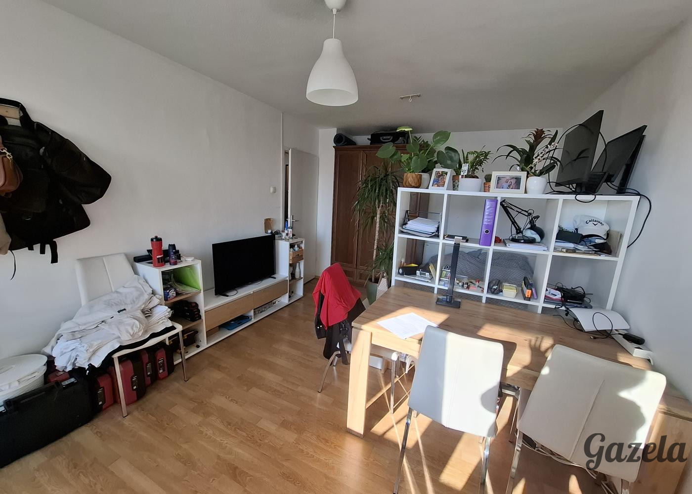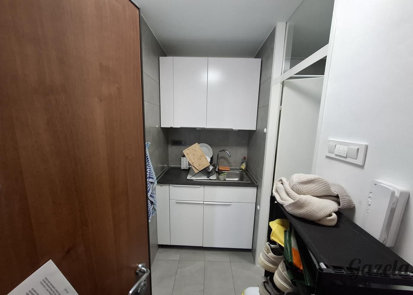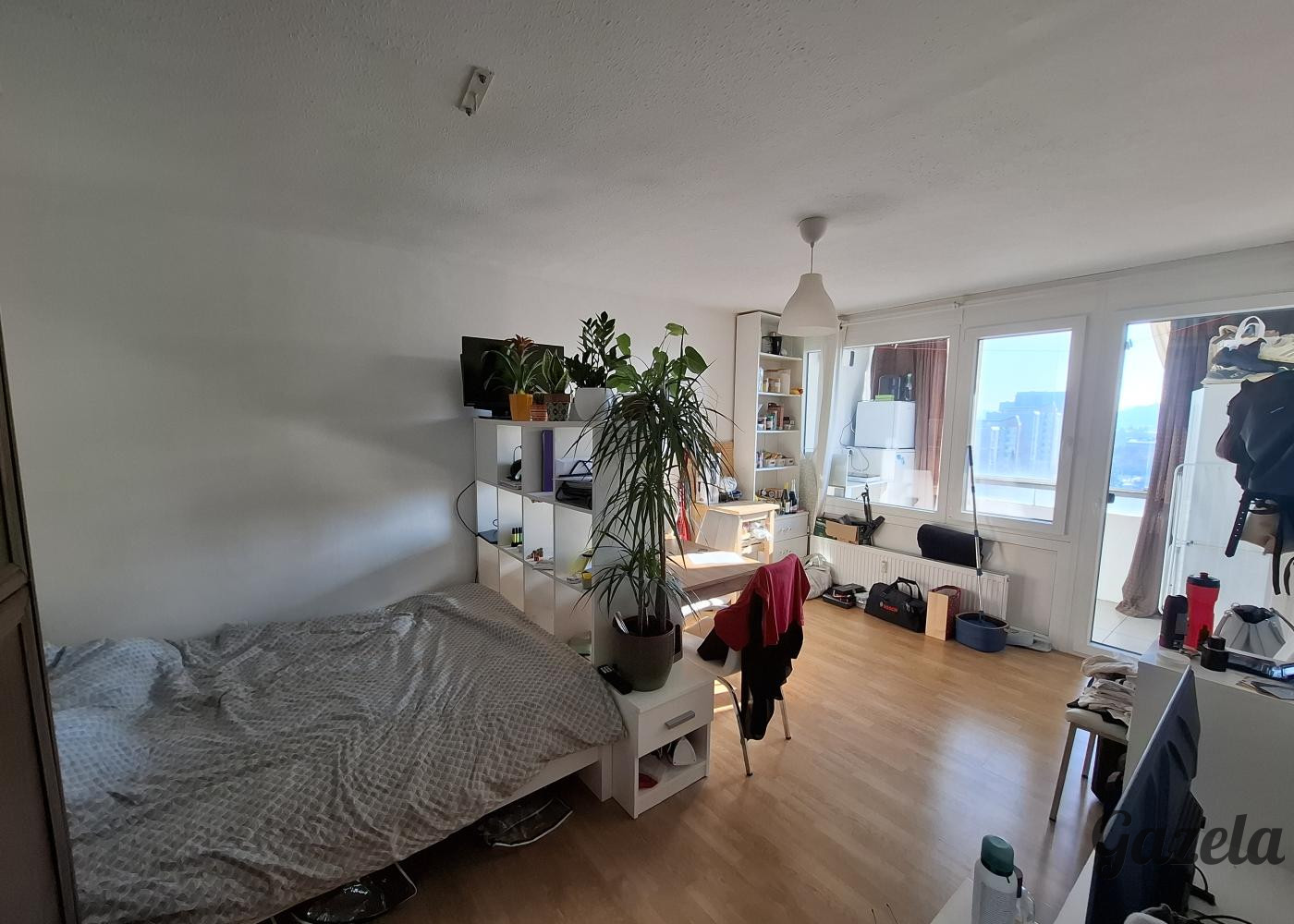 Garsonjera je svetla, opremljena z novejšo mini kuhinjo in prenovljeno kopalnico. Primerno za posameznika ali par.Dnevni prostor je brez ležišča/postelje. Parkiranje je omogočeno na skupnih parkiriščih v okolici bloka.
